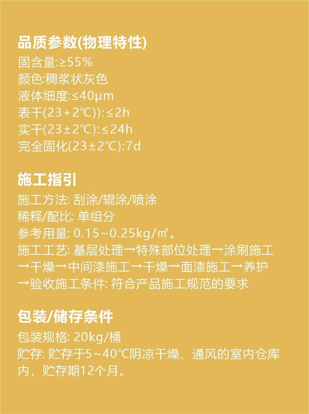 4、涂料抗滲透性好,有極好的耐浸泡性、耐腐蝕性和耐候性。