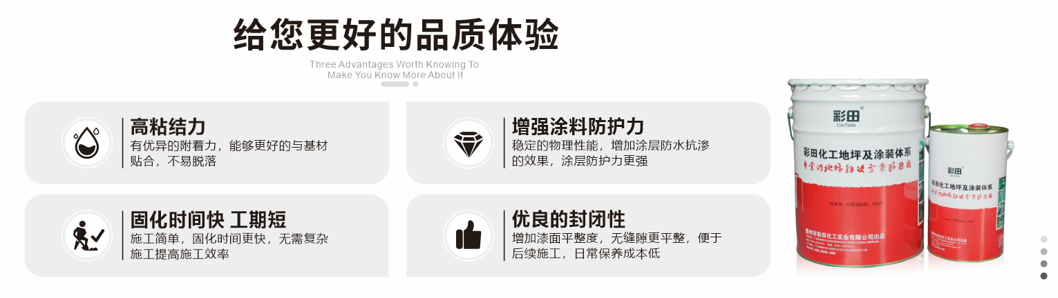 調配石英砂或石英粉,作為彩田牌環氧地板涂料的通用中涂,提高地板涂料的強度和平整度;優良的封閉性,特別適用于在環氧面涂施工前封閉毛細孔;可調配石英砂或石英粉,也可直接用作填補基材的坑洞。
