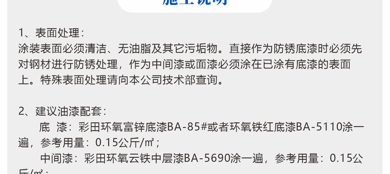 由云母氧化鐵為顏料配制而成的雙組份環氧漆,本品具有耐海水、耐腐蝕、抗碰撞、耐礦物油、脂肪烴及多種化學品性能。 適用范圍: 1) 作為環氧系列的底漆和中間漆,用于鋼鐵和水泥混凝土表面。 2 作為優質的中間漆和面漆涂于橋梁、汽車甲板、鋼結構建筑物等表面。 3) 作為環氧漆系列的底漆涂用于電鍍鋼板和鋁合金的表面。