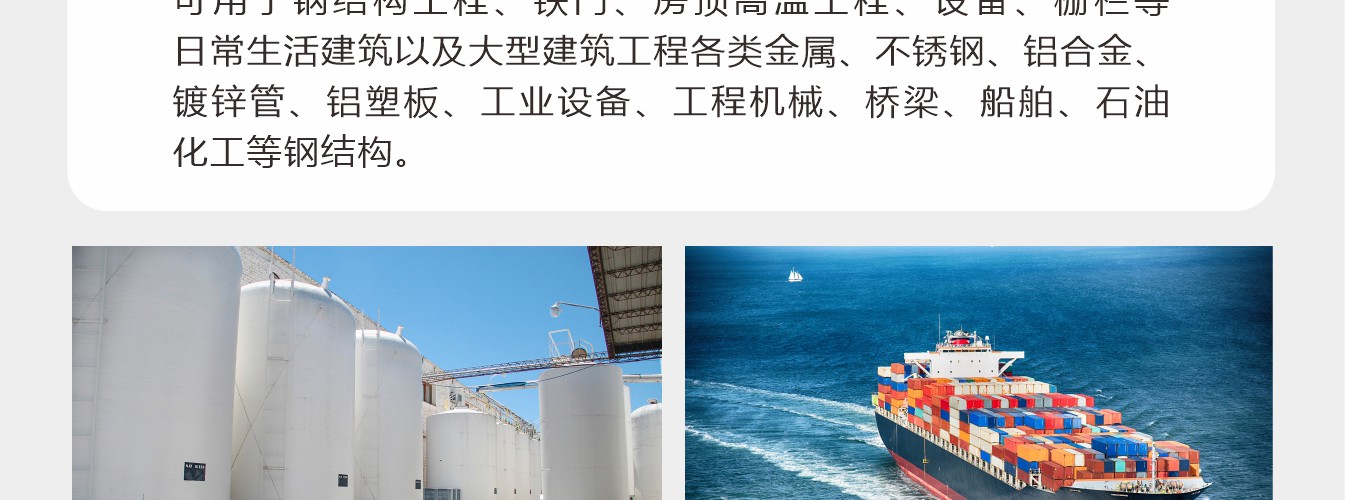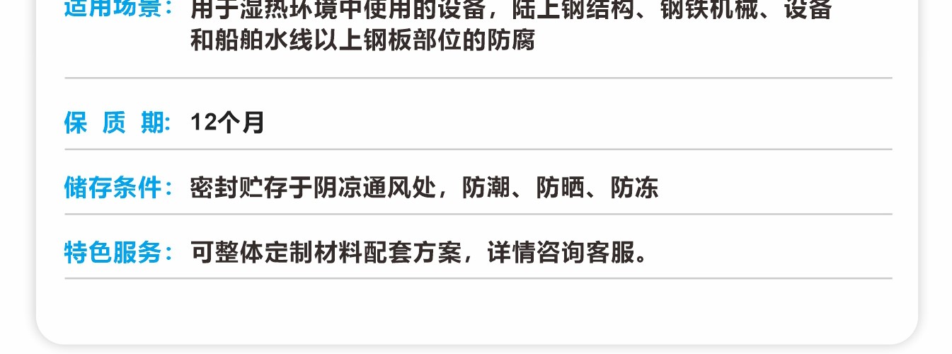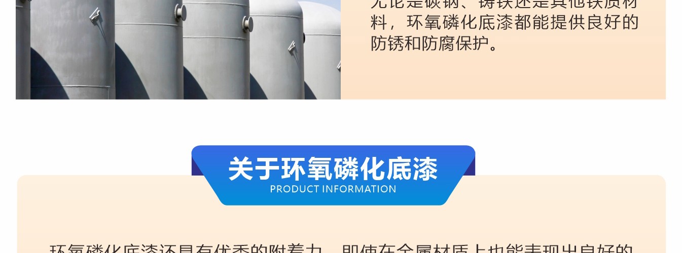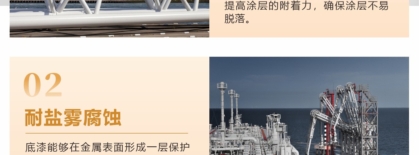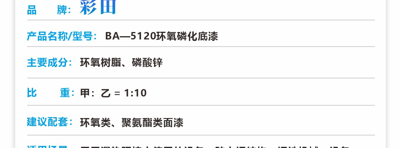 彩田的環氧磷化底漆是由環氧樹脂、磷酸鋅等防銹顏料、助劑、溶劑等組成的雙組份環氧樹脂涂料。?? 特性: 防銹性能優異,附著力、柔韌性、耐沖擊性優良,良好的耐鹽霧、耐水性和防銹性能,與彩田的環氧漆體系具有良好的配套性。 用途: 用于濕熱環境中使用的設備,陸上鋼結構、鋼鐵機械、設備和船舶水線以上鋼板部位的防腐。